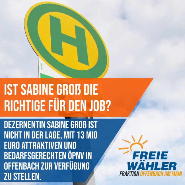 Die vergangenen Wochen haben gezeigt: Sabine Groß, Bürgermeisterin der Stadt Offenbach sowie zuständige Dezernentin für den ÖPNV, scheint weder fähig noch willig zu sein, ÖPNV ergebnisoffen zu evaluieren und neu zu strukturieren.