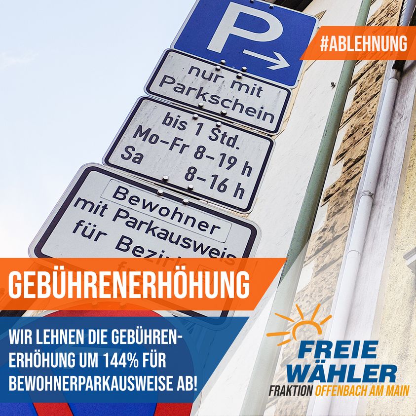 Diese Erhöhung jedoch soll zu einer denkbar schlechten Zeit kommen. Neben der Inflation und den explodierenden Energiekosten halten die FREIE WÄHLER eine Erhöhung von 30,70€ auf 75€, was eine Verteuerung von 144% pro Parkausweis bedeutet, für das absolut falsche Signal an die auf die Parkplätze angewiesenen Offenbacher Bürgerinnen und Bürger und für nicht gerechtfertigt.